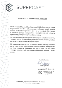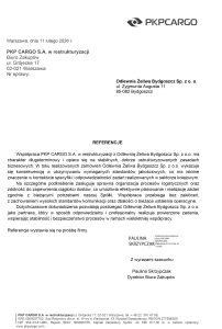Współpraca PKP CARGO S.A. w restrukturyzacji z Odlewnią Żeliwa Bydgoszcz Sp. z o.o. ma charakter długoterminowy i opiera się na stabilnych, dobrze ustrukturyzowanych zasadach biznesowych. W toku realizowanych zamówień Odlewnia Żeliwa Bydgoszcz Sp. z o.o. wykazuje się konsekwencją w utrzymywaniu wymaganych standardów jakościowych, co ma istotne znaczenie w kontekście specyfiki i odpowiedzialności zadań realizowanych w sektorze kolejowym. Na szczególne podkreślenie zasługuje sprawna organizacja procesów logistycznych oraz zdolność do zapewnienia ciągłości dostaw, co umożliwia efektywne planowanie i realizację zadań zgodnie z bieżącymi potrzebami naszej Spółki. Współpraca przebiega bez zakłóceń, z zachowaniem wysokich standardów komunikacji oraz dbałości o bieżące ustalenia operacyjne. Dotychczasowe doświadczenia pozwalają postrzegać Odlewnię Żeliwa Bydgoszcz Sp. z o.o. jako partnera, który w sposób odpowiedzialny i profesjonalny realizuje powierzone zadania, wspierając stabilność i bezpieczeństwo procesów w ramach wieloletniej współpracy.